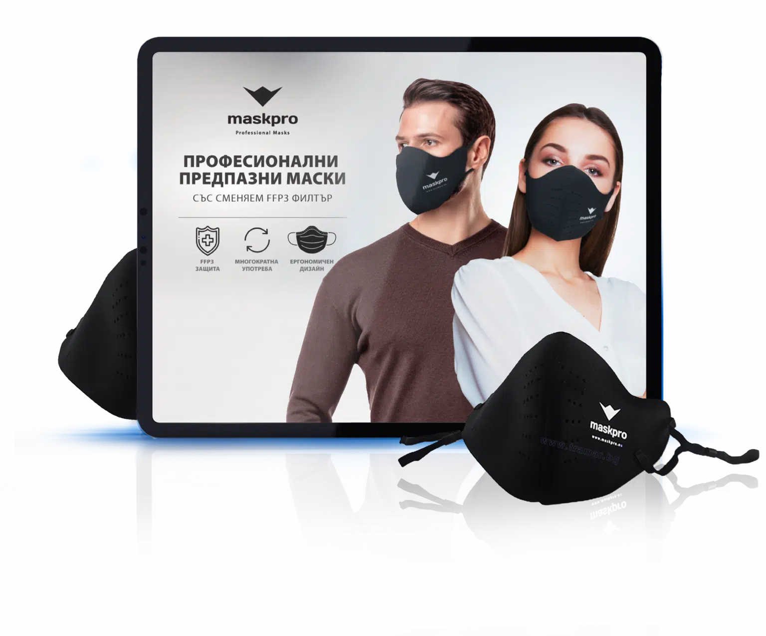 Maskpro is a professional protective mask with a removable filter for maximum Protection. Viruses, smog, dirty air and exhaust fumes are all around us! If you are a person who cares about health and excellent hygiene, then Maskpro is for you.